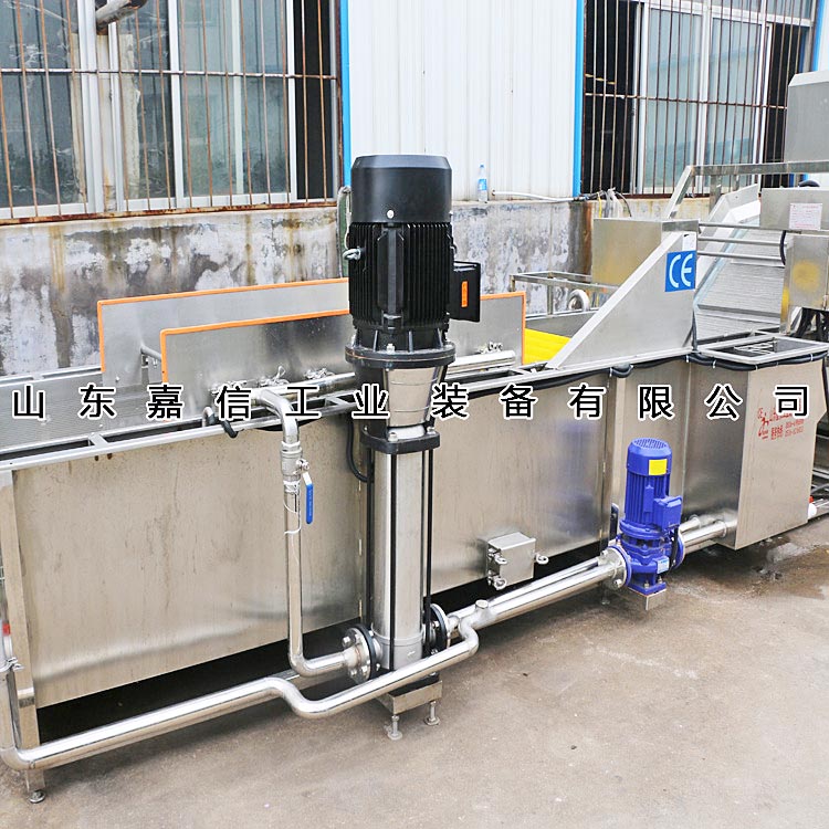 6、進料端裝有前推裝置,角度可調,使物料在槽體內形成對流,可將產品清洗的更幹淨,產品運行速度加快。