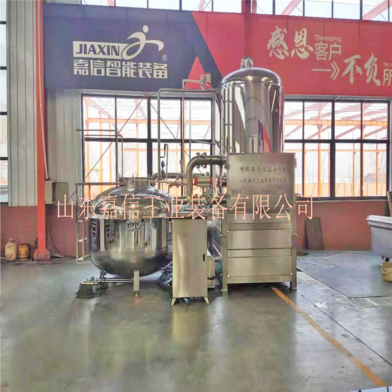 真空低溫油炸設備加熱方式采用蒸汽加(jiā)熱。以蒸汽作為加熱介質,比較適合一定規模的工業化生產。其加熱器是螺旋盤管與夾套相結合(hé),直接與炸油換熱(rè)。使用這(zhè)一方式的特點是熱力足,特別是在炸品進入釜體以後炸油溫度下降較多時,加大蒸汽供(gòng)應可以滿足加工時對熱量的需(xū)求。