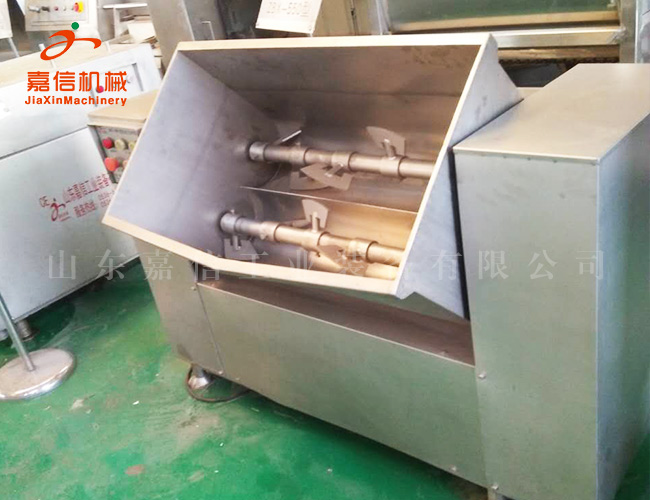 我公司生產的拌餡機是參照國(guó)際同類產品的特點,同時結合我國肉製品加(jiā)工工藝特點,自行(háng)研製開發的。該機可進行餡狀、散狀、醬狀物料的攪拌混合。經過攪拌的餡粘度增加,富有彈性,特製的扇形攪拌器,在(zài)攪拌的同(tóng)時又對餡料(liào)起嫩化作用,與國內同(tóng)類(lèi)產品相比較可顯著提高工作效率(lǜ),是(shì)食品生(shēng)產的一道重要工序。該機設有正逆運(yùn)轉,可(kě)滿足不同攪(jiǎo)拌工藝的要求。接觸食品及外觀部分均采用不鏽鋼材料,符合食品衛生(shēng)要求。