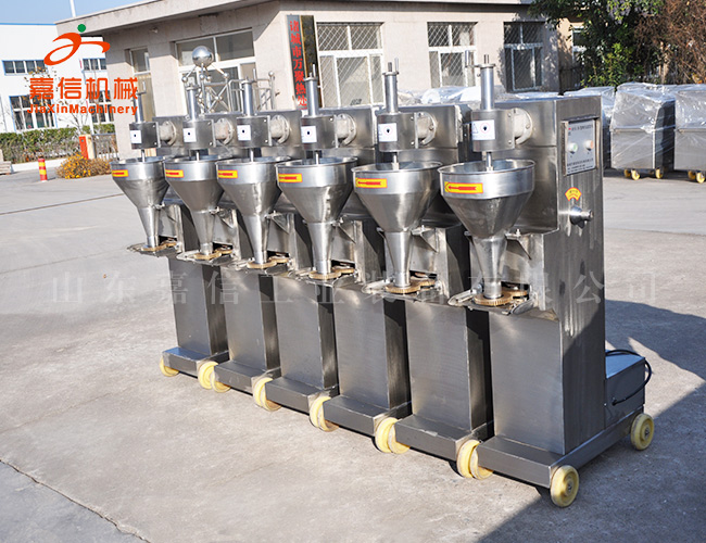 本機采用SUS304不鏽鋼製造,具有美觀大方,堅固(gù)耐用,操作維(wéi)修方便,效率(lǜ)省電等特點,可製作各類爽口、有韌性、有彈性的肉丸。肉丸機(jī)主要用於雞肉丸、魚丸、蝦丸、豬肉丸、牛肉(ròu)丸、羊肉丸、驢肉丸(wán)、蔬菜丸、海鮮丸(wán)等。肉(ròu)丸生產線的主要設備有絞肉機、刨肉機、拌餡機、斬拌機、肉丸機、成型水槽、油炸生產設備等。肉丸機分機械調(diào)速和變頻調速兩種(zhǒng)。丸子大小可(kě)更換模具