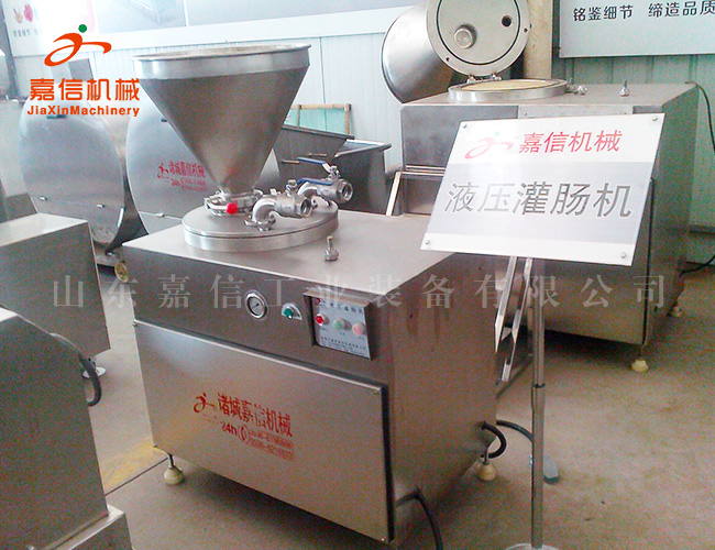采用活塞式液壓驅動,調準工作壓力後在液壓缸的作用下,使筒內的物料產生壓力後將料擠出,適用物料範圍較廣(guǎng),尤其對較(jiào)幹的料餡相(xiàng)對其他灌腸機效果更佳。設備整體結構合理、造形美觀、性能穩定、操作簡單、維修方便。
