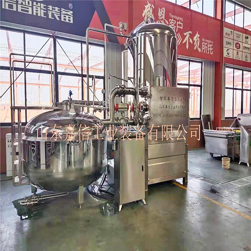 真空低溫油炸設備加熱方式采用蒸(zhēng)汽加熱。以蒸汽作為加熱(rè)介質,比(bǐ)較適合一定規模的工業化(huà)生產。其加熱器是(shì)螺旋盤管與夾(jiá)套(tào)相結合,直接與炸油換(huàn)熱(rè)。使用這一方式的特點是熱力足,特別(bié)是在炸品進入釜體以(yǐ)後炸油溫度下降較多時,加大蒸汽供應可以滿足加(jiā)工時(shí)對熱量的需求。