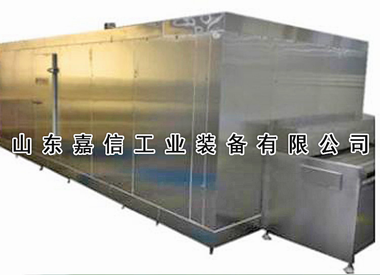 工作原理:速凍箱主要是由製冷係統、推進係統、電氣控製(zhì)係統及速凍室等所組成的;工作人員將裝有待(dài)凍食品的凍品盤通過速凍入口進(jìn)入(rù)速凍軌道並在人力的作用下向(xiàng)出口方向步進移動,在移動的過程中,經過一個由風機的作用(yòng)下形成一個穩定的(de)垂直環狀低溫氣流,這個低溫氣流與水平運動的被凍食品進行熱交換,從而實現快速降溫凍結過程。