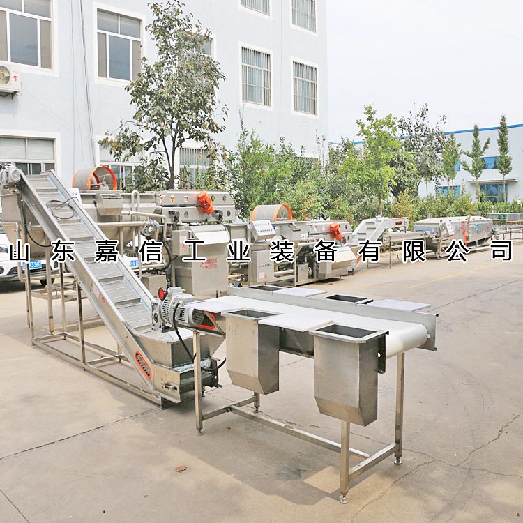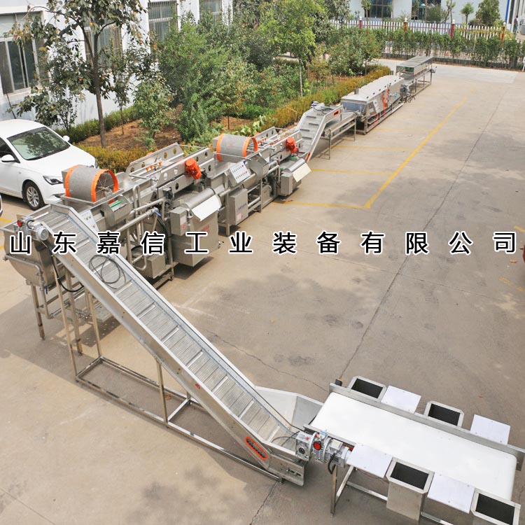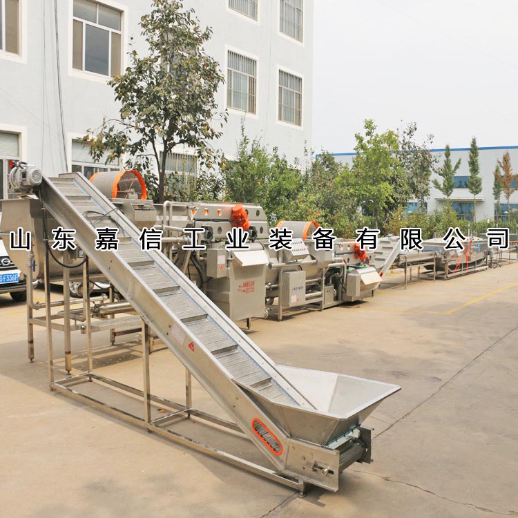 該流水線由切絲(sī)機、輸送機、清洗機、脫水機、烘幹機(jī)等設備組成,主要用於海帶或根莖類蔬菜的切割、清洗(xǐ)、脫水及烘幹工作。